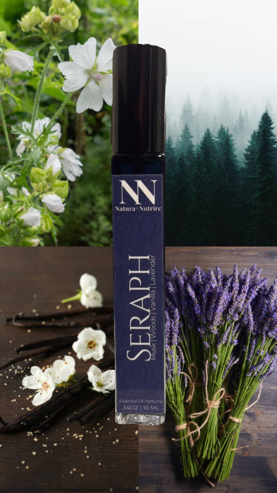 A delicate balance between innocence and intrigue. Seraph begins with a soft whisper of vanilla, lifted by calming lavender at its heart. As it settles, warm smoky woods wrap around the sweetness, evoking the comfort of light through morning haze—gentle, ethereal, and timeless.